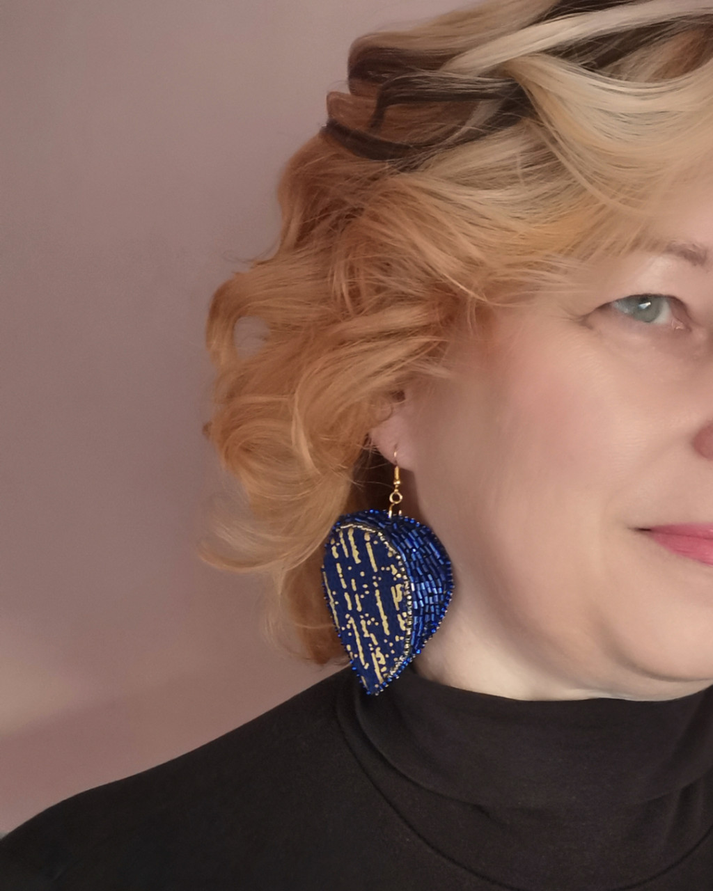 Éjkék Harmónia – gyöngyhímzett statement fülbevaló, bátor nőknek