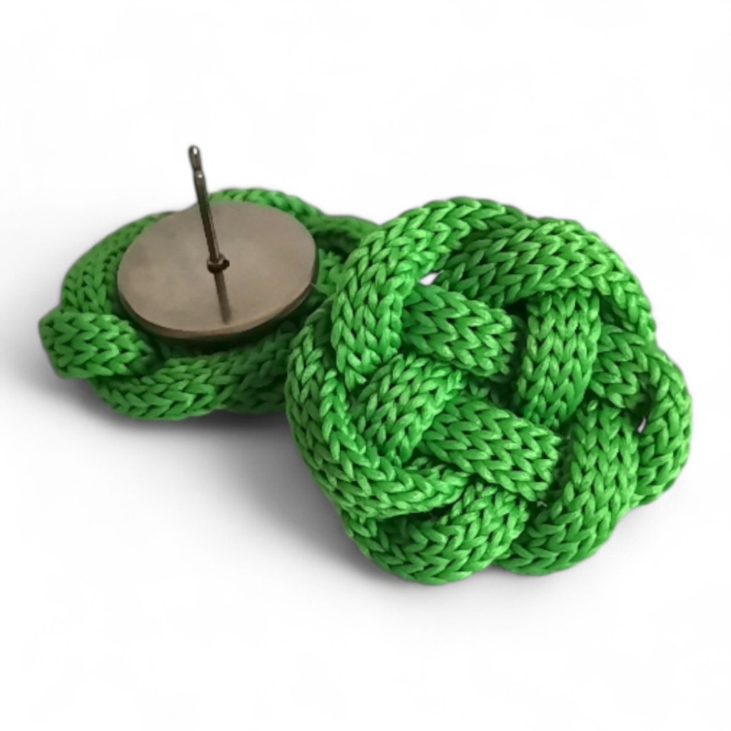 A Szabad szálak kollekció játékos darabja az Ilka fülbevaló, amely az élénkzöld árnyalat vidámsgát és a kézi csomózás erejét ötvözi.