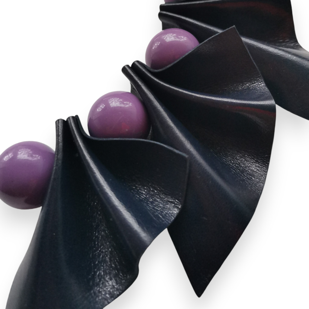A Thyvum Indigo wawe modern bőr nyaklánca lila gyöngyökkel karakteres, mégis nőies kiegészítő, amely a hétköznapi és alkalmi szettekhez egyaránt jól illeszkedik. A sodrony elegáns egyszerű vonala, a kék hullmok és a dekoratív lila gyöngyök harmonikus kombinációja különleges, de nem tolakodó megjelenést ad.