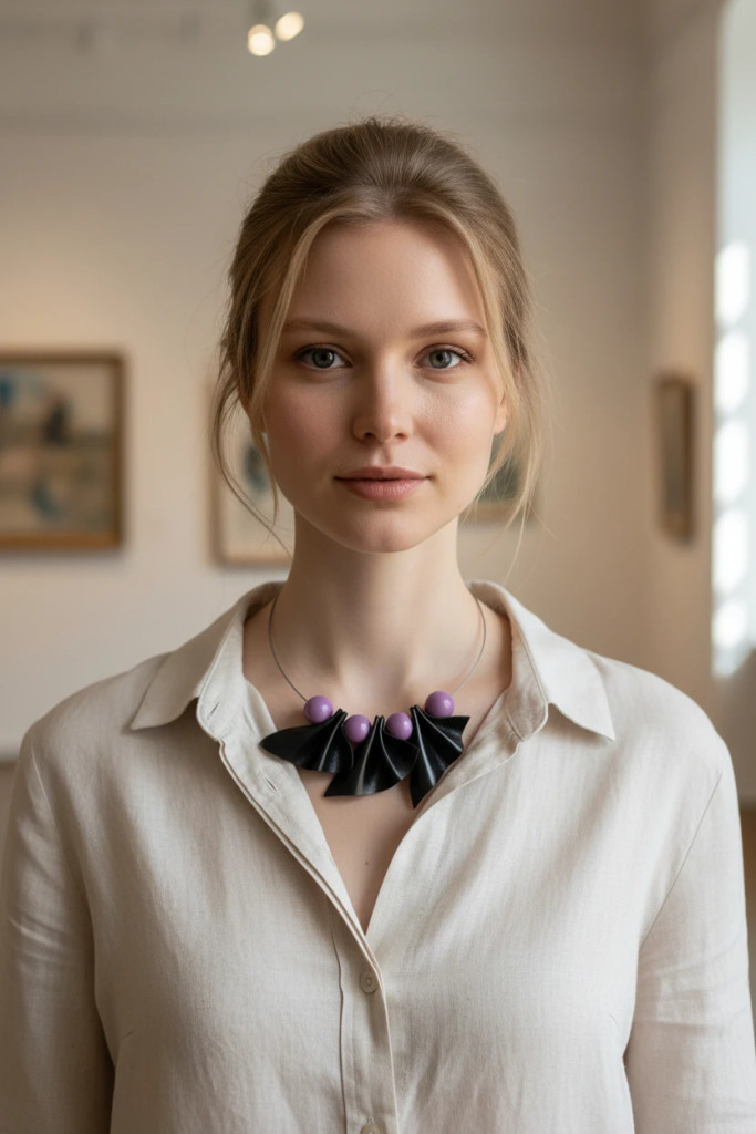 A nyaklánc jól kombinálható más ékszerekkel: hordhatod önmagában a visszafogott eleganciáért, vagy rétegezve hosszabb láncokkal, ha modernebb, látványosabb hatást szeretnél elérni. A lila árnyalat különösen jól mutat ezüstös, szürke, fekete, fehér, valamint pasztell tónusok mellett.