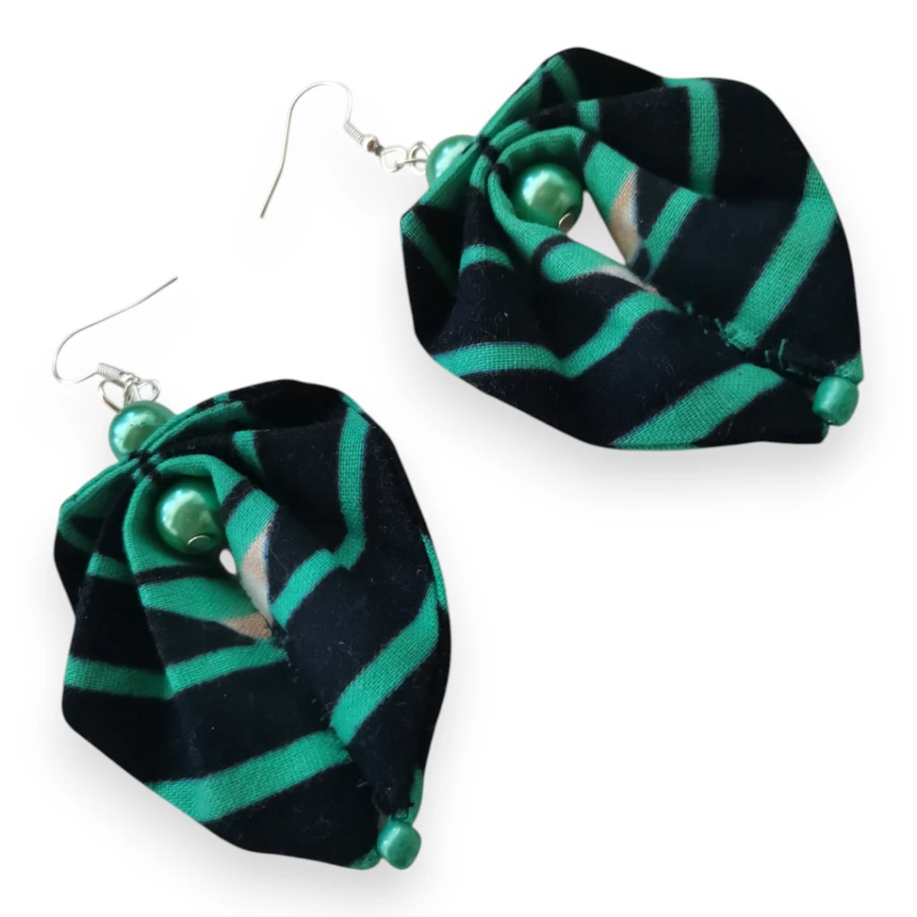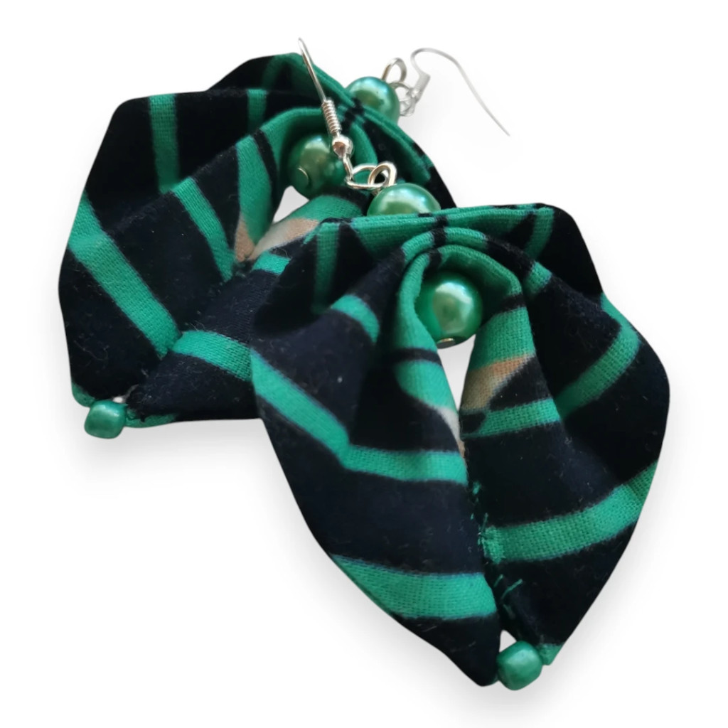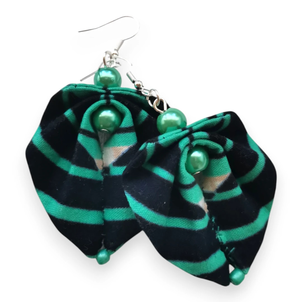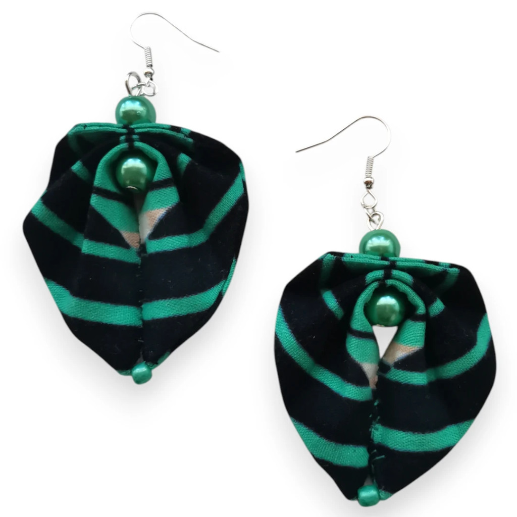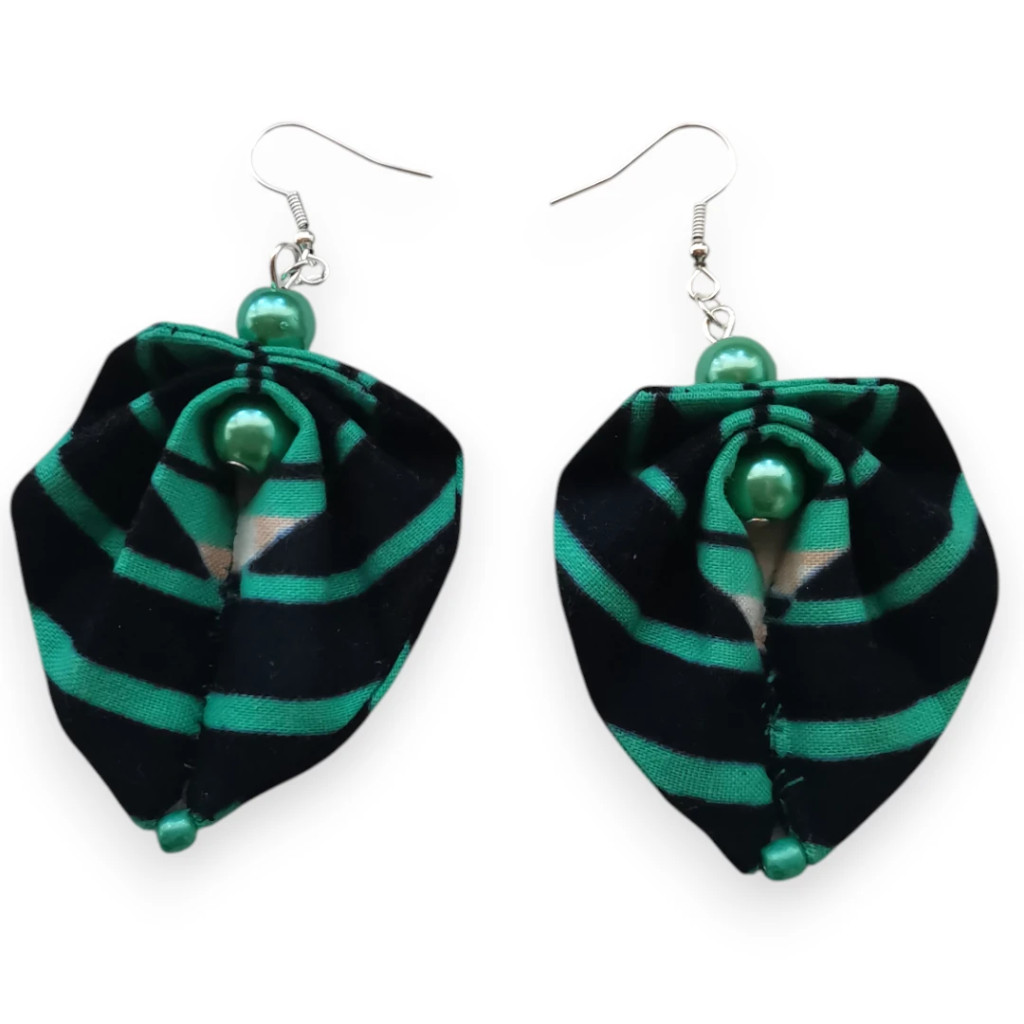 Moyo Leaf türkiz fekete csíkos fülbevaló
