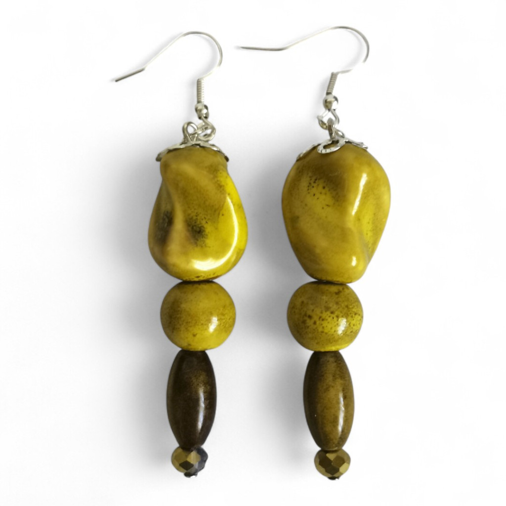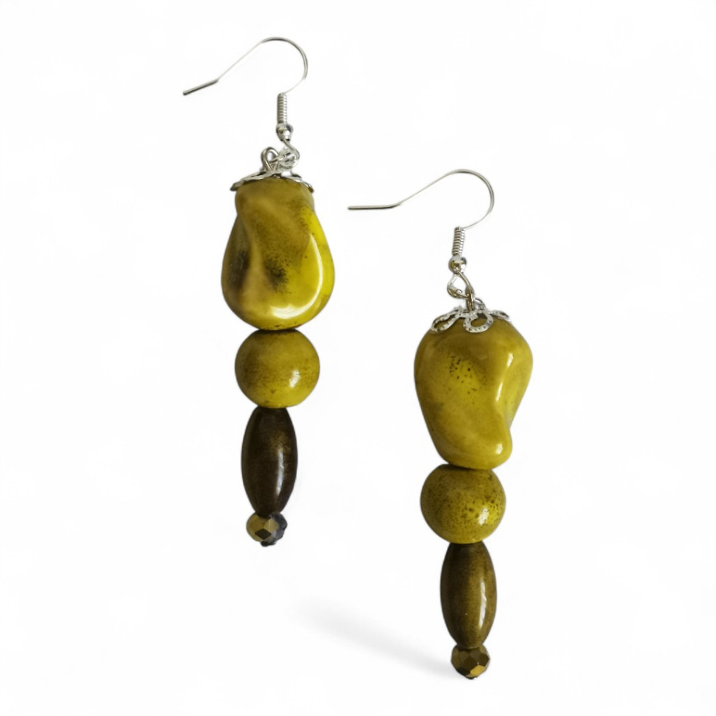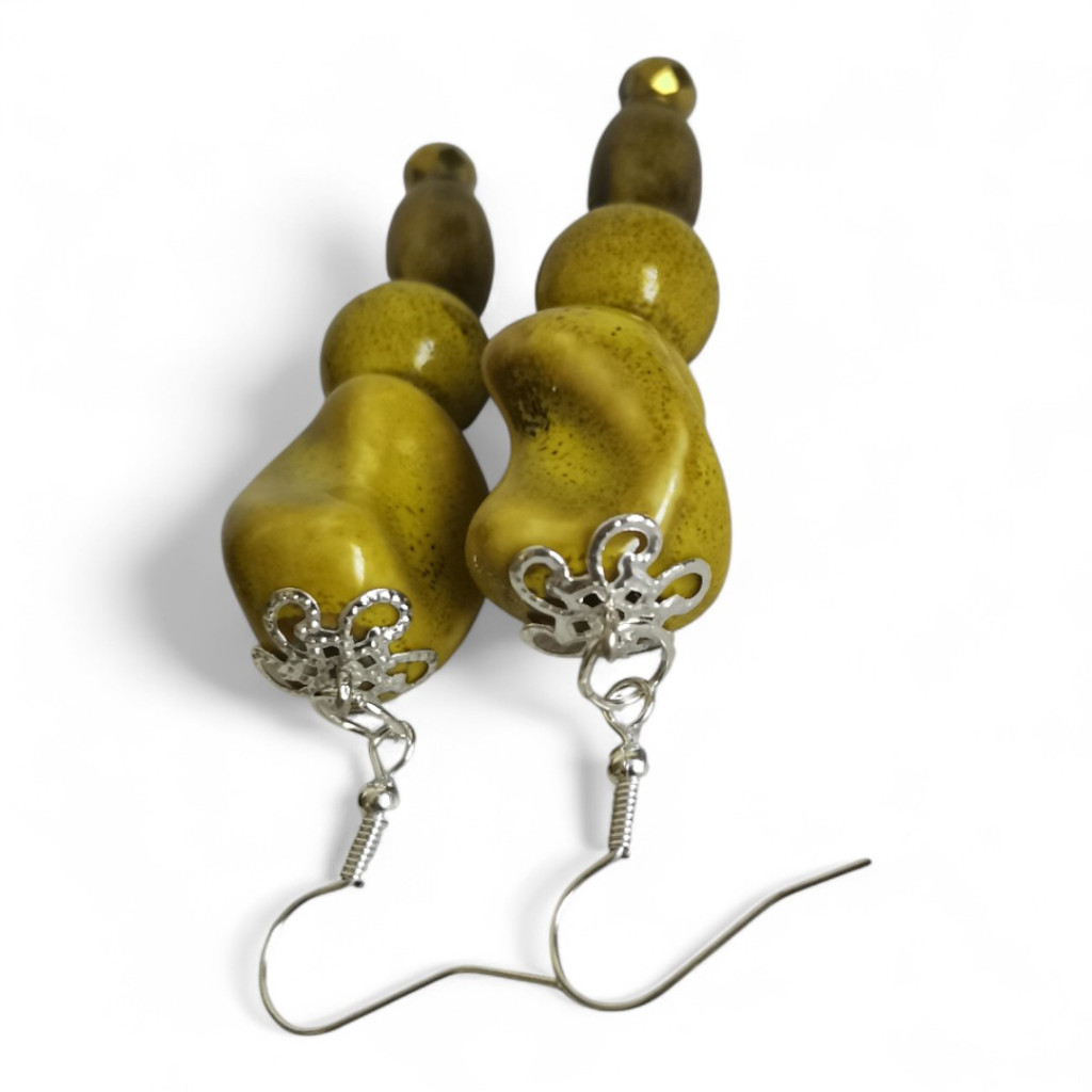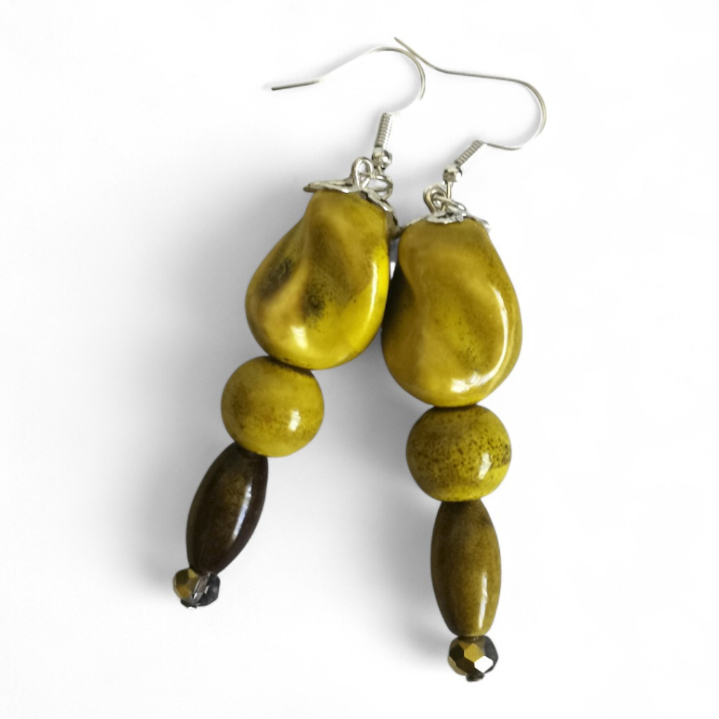 Nomad Spirit olívazöld rusztikus kerámia gyöngyfülbevaló