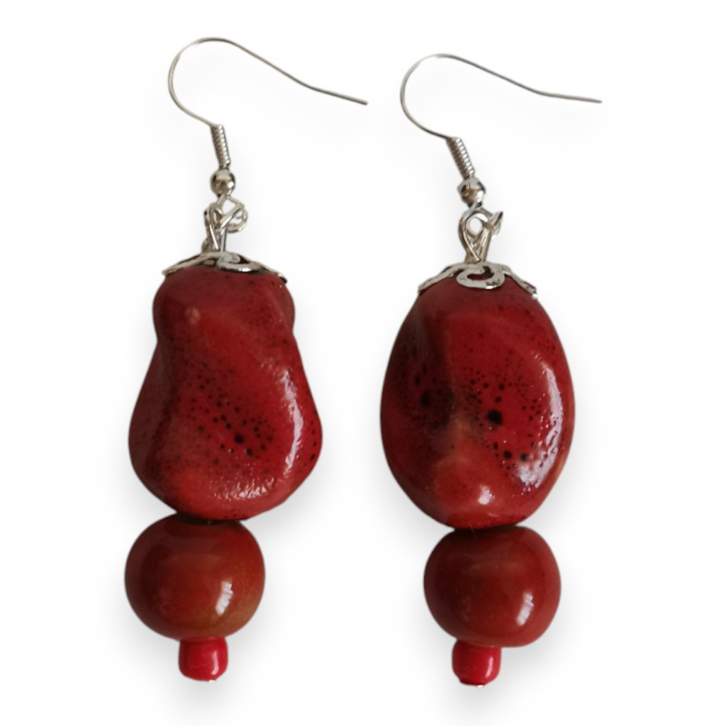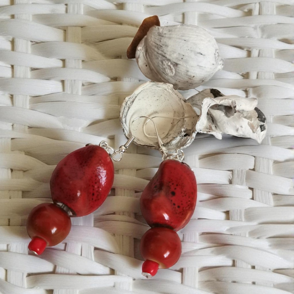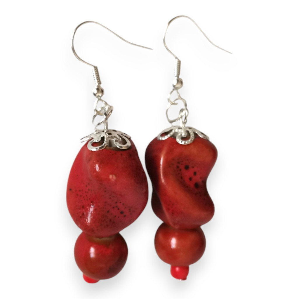 Nomad Spirit piros rusztikus kerámigyöngy fülbevaló