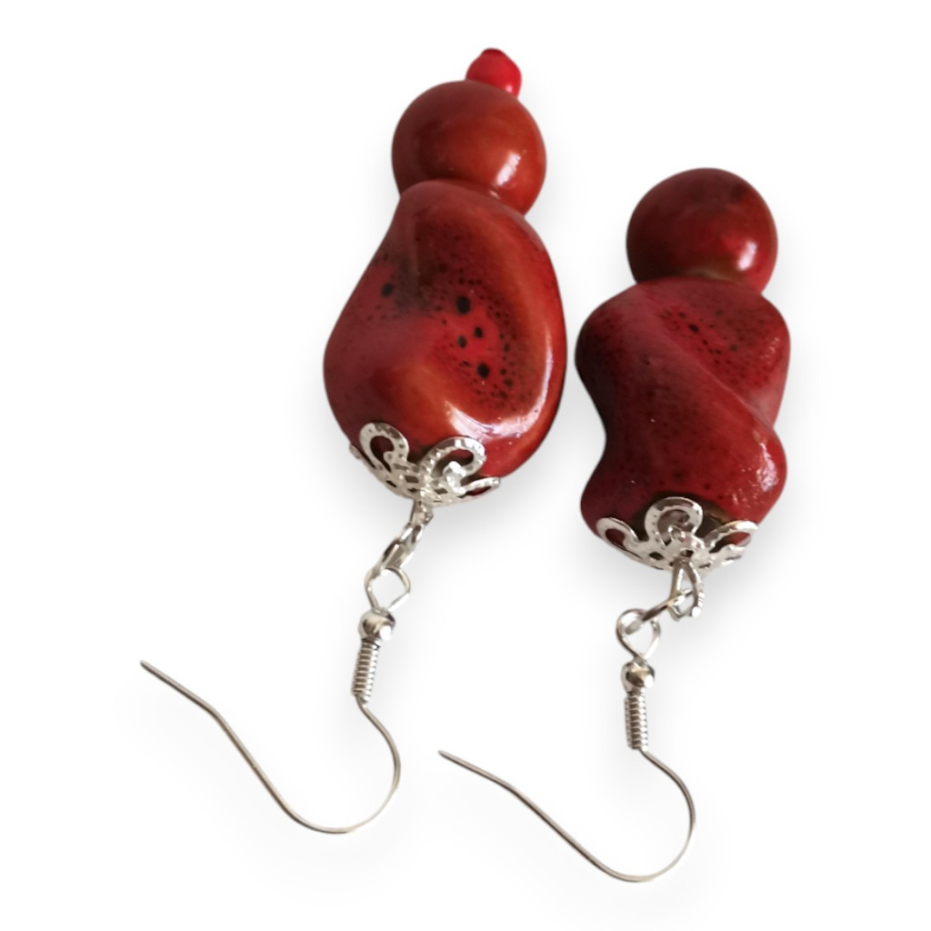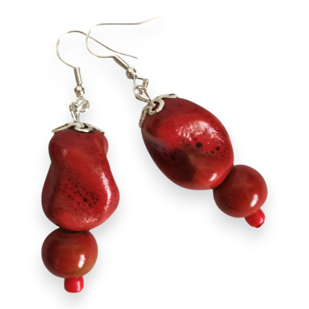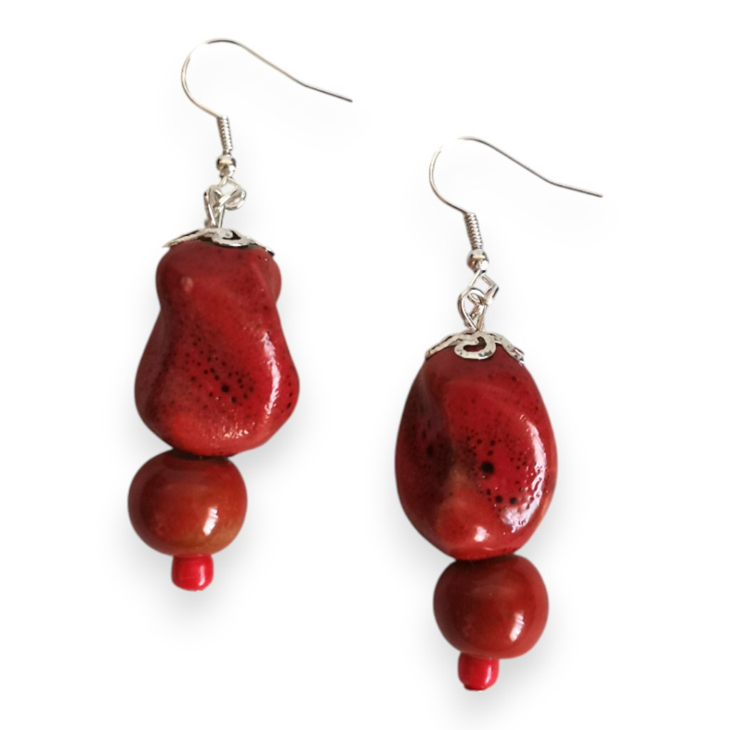 Nomad Spirit piros rusztikus kerámigyöngy fülbevaló