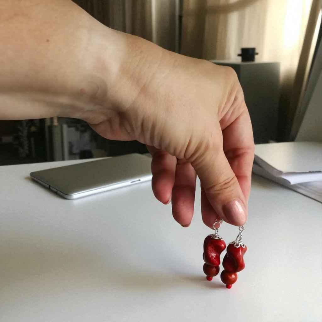 A Nomad Spirit fülbevaló a természetes elegancia megtestesítője. Rusztikus kerámiagyöngyei a föld színeiben ragyognak: ez a változat a piros szín kedvelőinek készült: igazi csipkebogyó-szín. Egyedi, természetközeli ékszer, a szabad léleknek, aki szereti a nyugalmat, az utazás hangulatát és a föld meleg tónusait.