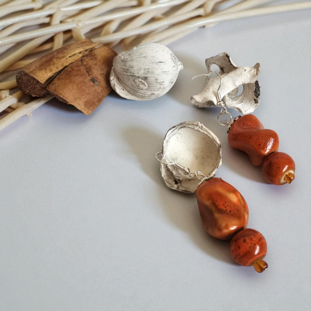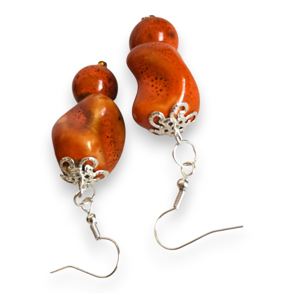 A Nomad Spirit fülbevaló a természetes elegancia megtestesítője. Rusztikus kerámiagyöngyei a föld színeiben ragyognak: ez a változat rozsdavörös színben pompázik. Egyedi, természetközeli ékszer, a szabad léleknek, aki szereti a nyugalmat, az utazás hangulatát és a föld meleg tónusait.