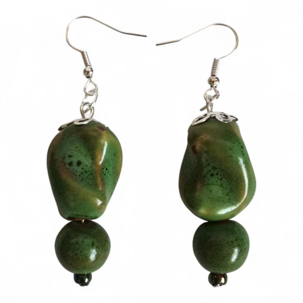 A Nomad Spirit fülbevaló a természetes elegancia megtestesítője. Rusztikus kerámiagyöngyei a föld színeiben ragyognak: ez a változat a természetes zöld árnyalatok kedvelőinek készült. Egyedi, természetközeli ékszer, a szabad léleknek, aki szereti a nyugalmat, az utazás hangulatát és a föld meleg tónusait.