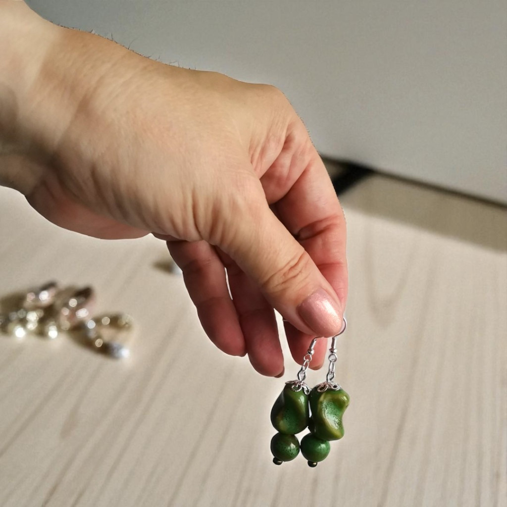 Nomad Spirit zöld rusztikus gyöngyfülbevaló