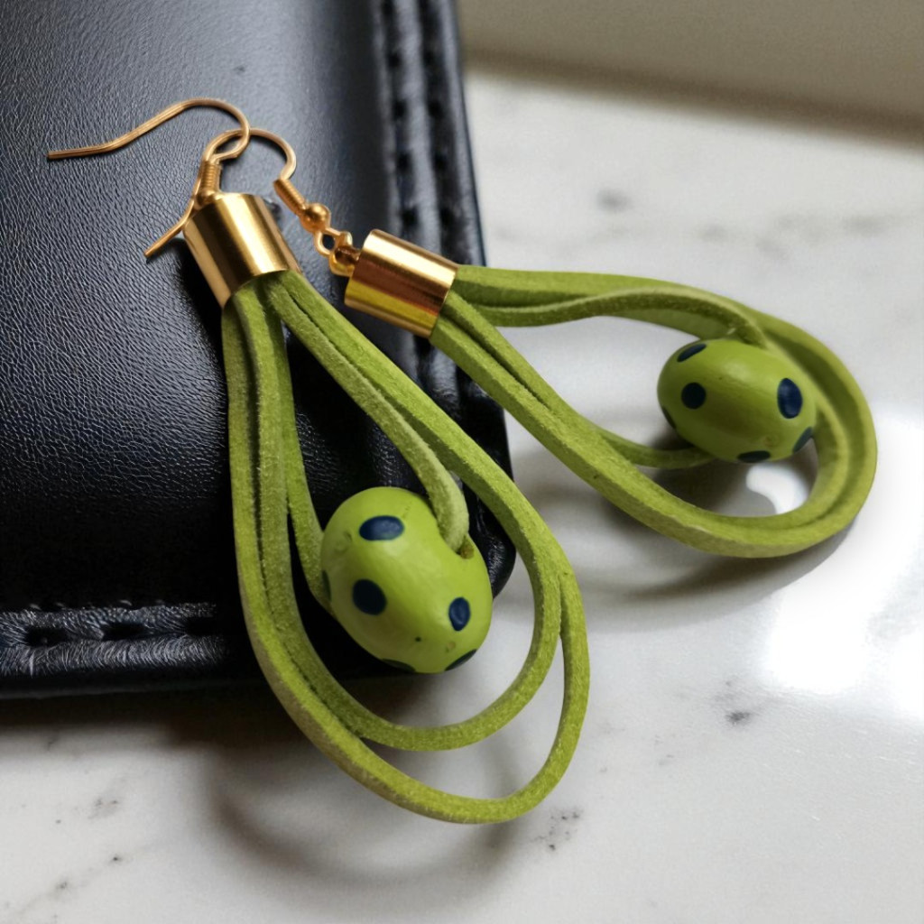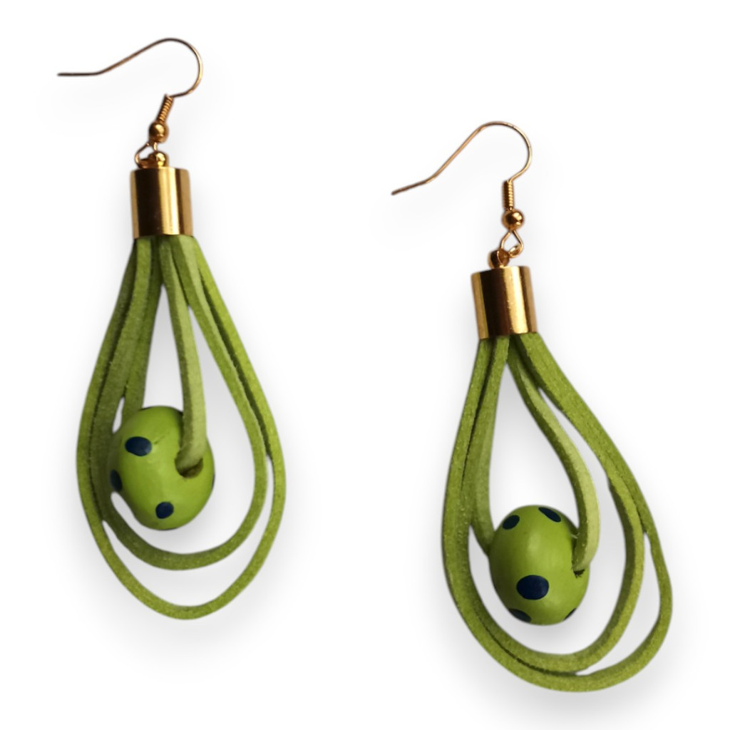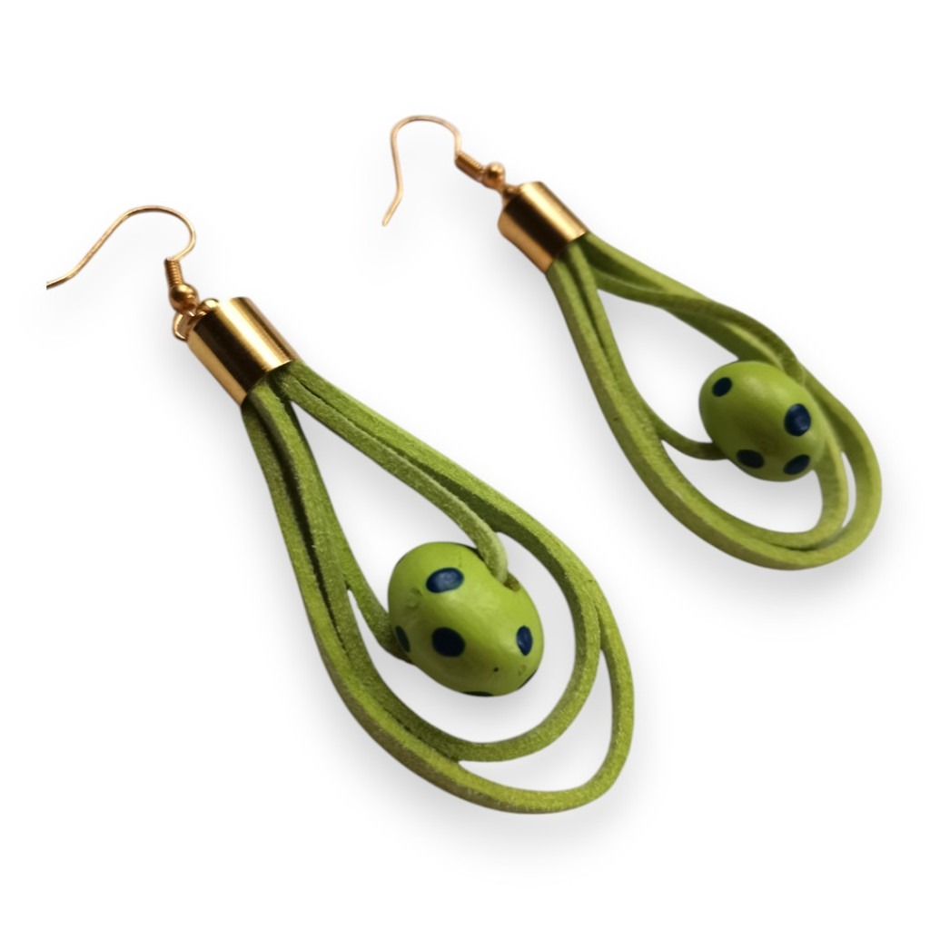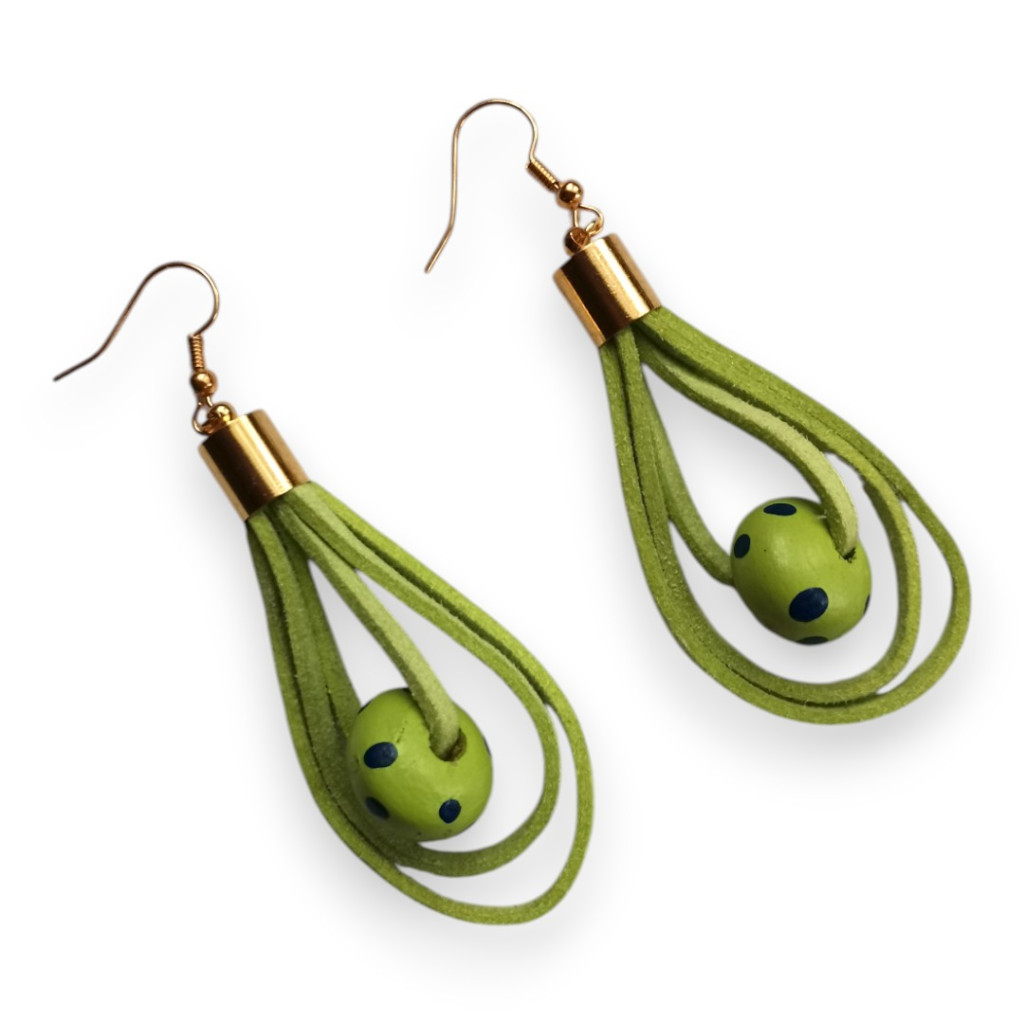 Merülj el a színek játékában a Színcsepp fülbevalóval! Ez az egyedi, kézzel készült darab finom bőrszálakból formálódik csepp alakba, középpontjában egy dekoratív, mintázott fa gyönggyel. Könnyű, légies, mégis karakteres – pont az a kis extra, ami életre kelti a mindennapi öltözékedet vagy a kedvenc szettedet.