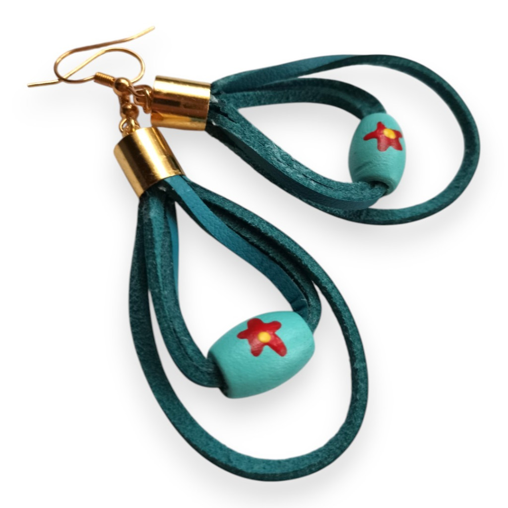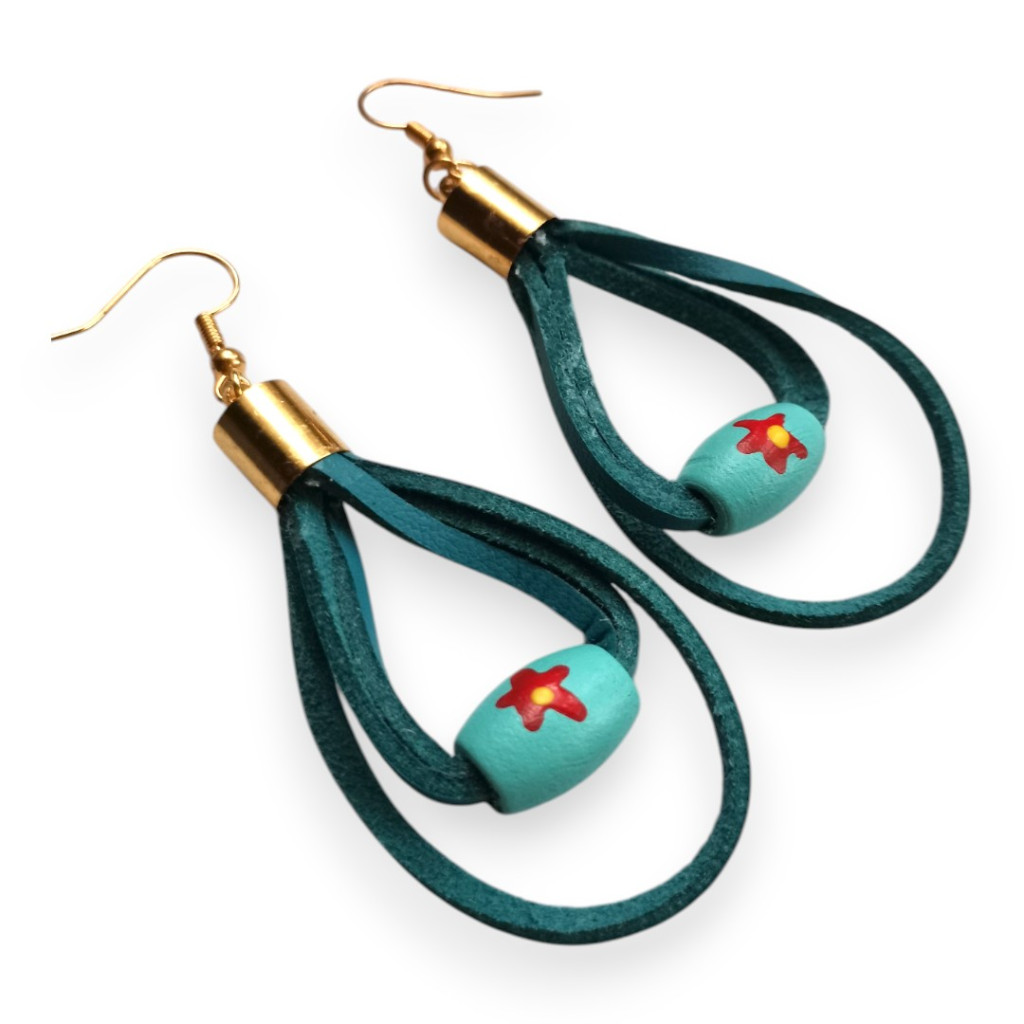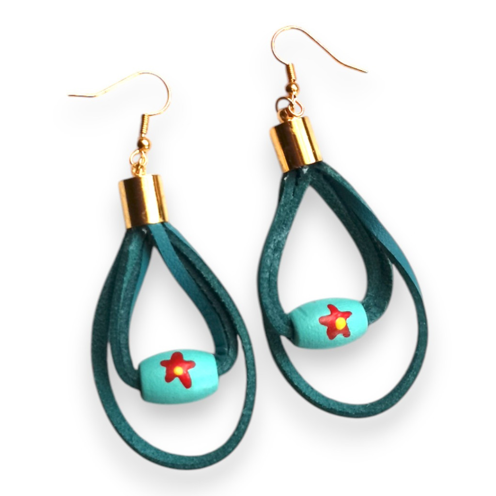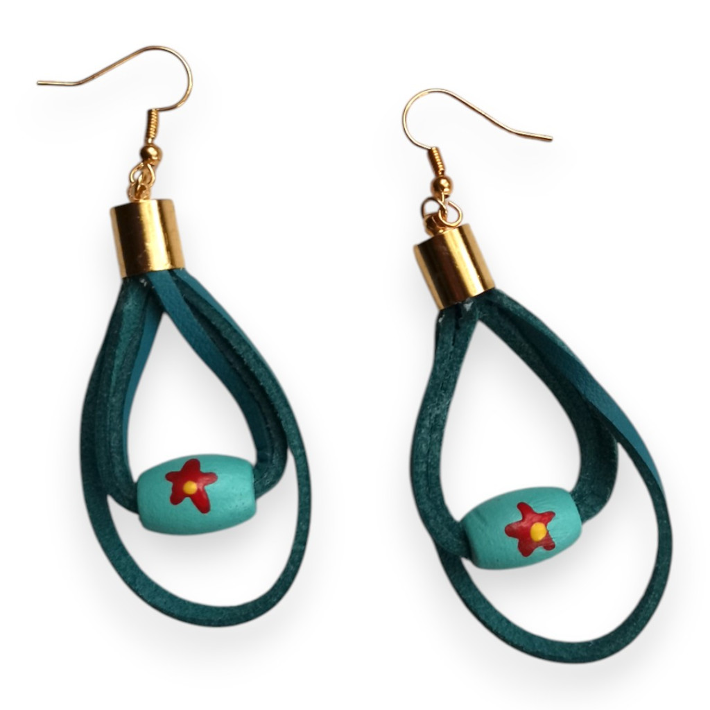 Merülj el a színek játékában a Színcsepp fülbevalóval! Ez az egyedi, kézzel készült darab finom bőrszálakból formálódik csepp alakba, középpontjában egy dekoratív, mintázott fa gyönggyel. Könnyű, légies, mégis karakteres – pont az a kis extra, ami életre kelti a mindennapi öltözékedet vagy a kedvenc alkalmi szettedet.